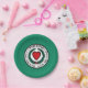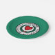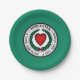 Paper plate with flag of city of Worcester, Massachusetts; green flag with white emblem with red heart in the center