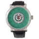 Watch with the flag of Wichita, Texas. A red, white, and blue with flag of city of Worcester, Massachusetts; green flag with white emblem with red heart in the center