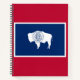 This design features the state flag of Wyoming, which is a doubly landlocked state in the western United States. It is the second most sparsely populated state in the country. Wyoming is bordered to the north by Montana, to the east by South Dakota and Nebraska, to the south by Colorado, to the southwest by Utah and to the west by Idaho and Montana. The official nickname of Wyoming is "Equality State", but it is also sometimes known as "Cowboy State" or "Big Wyoming". Wyoming's western half is mostly covered by the ranges of the Rocky Mountains, while the eastern half of the state is high-elevation prairie called the High Plains. Yellowstone national park is partially in Wyoming and Grand Teton national park is entirely within the state. Cheyenne is the state capital and the most populous city of Wyoming. The flag of the state of Wyoming includes a silhouette of an American bison. The red symbolizes Native Americans and the blood of pioneers who gave their lives. The white is a symbol of purity and uprightness. The blue is the color of the skies and distant mountains.
