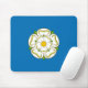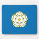 This design features the flag of the historic county of Yorkshire in the north of England. Within the borders of the historic county of Yorkshire are vast stretches of unspoiled countryside such as can be found in the Yorkshire Dales or the North York Moors. Yorkshire has been nicknamed "God's Own County". The emblem of Yorkshire is the White Rose of the English royal House of York; the flag of Yorkshire features that rose on a blue background.