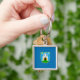 Square Keychain with design with flag of Zagreb, capital city of Croatia, blue flag with emblem