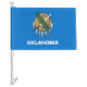 The state flag of Oklahoma.The flag of the State of Oklahoma consists of a traditional Osage Nation buffalo-skin shield with seven eagle feathers on a Choctaw sky blue field