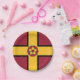 Paper plate with design with a flag of historic county of Northamptonshire, in England, Great Britain; maroon flag with a gold cross and the county’s traditional rose in the centre