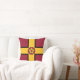 Throw pillow with design with a flag of historic county of Northamptonshire, in England, Great Britain; maroon flag with a gold cross and the county’s traditional rose in the centre
