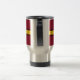 Travel Cup with design with a flag of historic county of Northamptonshire, in England, Great Britain; maroon flag with a gold cross and the county’s traditional rose in the centre