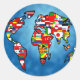 Illustration of planet earth made up of various flags from around the world. Image available on various gifts and products.