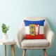 Throw pillow with variant flag of Schleswig-Holstein; design with horizontal tricolor of red, white and blue, and with state’s coat of arms in the center