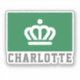 This flag of Charlotte was adopted in 1985. It may be considered a government service flag, since it is flown outside the Government Center and its central charge appears on government vehicles. It consists of a stylized white crown centered on a green field occupying about the central three-fifths of the flag overall. Its center forms an “M”. The crown is for unity—all city agencies cooperating for the good of Charlotte’s citizens.