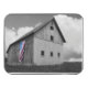 Flags of Our Farmers XVI by James McLoughlin. Black and white photograph of a barn with an American flag.