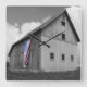 Flags of Our Farmers XVI by James McLoughlin. Black and white photograph of a barn with an American flag.