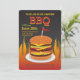 An eye-catching BBQ invitation with a stacked hamburger on a seeded bun and a flame background. (FP). <br/><br/>The card is easy to customize with your wording, font, font color and choice of six paper types.<br/><br/>Not exactly what you're looking for? All our products can be custom designed to meet your needs at no extra charge.<br/><br/>Simply contact us at askpixieprints@aol.com.<br/><br/>Coordinating products available: