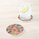An eye-catching sandstone Coaster or Drinks Mat, with an abstract pattern in vibrant colors - Flaming Orange, Midnight Blue and Deep Green, from a digital design by Judy Adamson.
