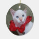 Lightweight, smooth, pure white ornament with nice sheen. Perfect size to be seen from across the room ... and to attract closer inspection! Price was great for ordering enough for the whole family! Clear, bold black design just as requested. Matches the order exactly. Just so nice!