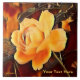 A stylized depiction of a yellow-orange rose on a dark red and orange background. Add your own text.