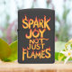 A digital illustration featuring the words Spark Joy, Not Just Flames written in stylized red and orange letters that appear to be made of fire.