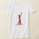 Flamenco Dancer distressed design in red and black. She's holding a fan and standing on a platform.