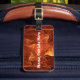 A unique orange flame and smoke fractal over a black background decorates one side of this template luggage tag. The tag back is where you can add your vital information. Fill in the template fields with your name, initial(s) and/or click Customize it! to select a font stye, size and color you like. In customize select a color other than white for the back under Edit then Background.