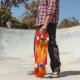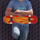 A graphic of hot flames on a skateboard.