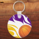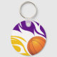Flaming Basketball Purple and Gold Keychain