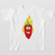 Want something that is really hot then go with this flaming chili pepper. This design looks hot with the red chili pepper done in a cartoon design with flames coming out the top. This flaming chili pepper design looks great on this girls t-shirt. Perfect for yourself or as a gift