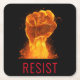 Social justice themed coaster features large fist of fire and flames with customizable "RESIST" text in red modern font on black background.