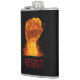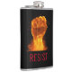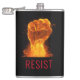 Social justice themed accessory features large fist of fire and flames with customizable "RESIST" text in red modern font on black background.