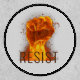 Digital illustration features large fist of fire and flames with customizable "resist" text in brown modern font. What better way to make your stand?
