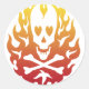 This scary skull has unexpected hearts for eyes and a yellow to red bleed in the flame.