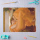 This design features a painting by the British artist Sir Frederic Leighton (1830–1896), who was famous for his works depicting historical, biblical, and classical scenes in an academic style. This painting shows a stunningly beautiful woman wearing a diaphanous red dress as she is curled up asleep. Some art historians have said that the toxic oleander branch in the top right could symbolize the fragile link between sleep and death. The rich colors and the elegantly recreated marble surround are characteristic of Leighton's realistic style, as is his lifelike use of natural light. This painting is widely considered to be Leighton's magnum opus and it was completed in 1895; it is currently housed in the Museo de Arte de Ponce, Puerto Rico.