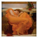 Flaming June by Frederic Leighton, oil on canvas 1895, is a painting of a draped female figure in repose, reclining in an elegant marble interior, the natural light of the setting sun illuminating the scene in a range of warm, brilliant colors like liquid gold. The elegant, classical figure and smooth contours evoke the nymphs and draped figures of the sculpture of classical Greece, while the inclusion of the toxic Oleander plant above provides a Romantic reminder of the link between sleep and death. Flaming June is the artist’s most famous painting among many that are regaining recognition after a long period of neglect of art of the Victorian era.