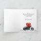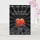 Hit the open road with a wedding greeting card for the couple that is all about the open road and their bike(s). A graphic outlined motorcycle is accented by a flaming heart against a rich black grungy burst background with a top and bottom border of thin chrome flames. The motorcycle image is repeated on the interior to emphasize the text. All text is completely customizable. Available with matching products.