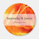 Chic orange and red flaming rose wedding magnet personalized with your names and date.
