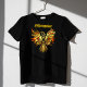 Cool looking golden Phoenix with flaming wings and tail feathers. Customize the text to read anything you want or even delete the text field for no text on the shirt.