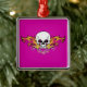 Flaming Skull and Hearts Metal Ornament