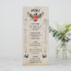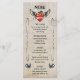 Beautiful and elegant tattoo inspired wedding Menu with flaming winged heart , blue swallows scroll work on a grungy vintage background. Hand drawn by McBooboo
