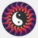 Flames in gold, red, and blue swirl out from this yin yang sun in a beautiful, positive design.