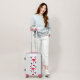Funky pink flamingo and black palm tree design on luggage available to customize.