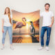 Flamingo and Penguin Sunset Encounter Fleece Blanket