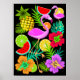 Flamingo and Summer Fruits Fun Pattern Poster
