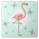 Mid-century inspired design with a retro touch featuring a pink flamingo against a white diamond shape and surrounded by stars on a pale aqua green background. A customizable design for you to personalise with your own text, images and ideas. An original digital art image created by Jess Perry at QuirkyChic Retro
