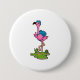 Flamingo as Hiker with Backpack Button