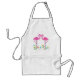 Original graphic artwork of pink flamingo yard stakes with colorful and whimsical flowers. Pretty Summer time hostess apron or great for barbecues.