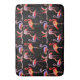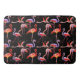 Flamingo bath mat, large with colorful birds, stars, on a black background. Thanks to Creative Fabrica for some of the elements in the design.