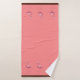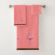 This bath hand towel is shown in a solid color of coral pink with flamingos and chocolate brown accents.
