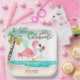 Fun, festive paper plates feature a pink flamingo on the beach enjoying a tropical cocktail next to a palm tree with a "let's celebrate" caption in modern, casual handwriting script. Perfect for wedding receptions, shower, engagement party & more!