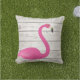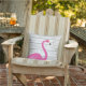 This cute beach sign outdoor cushion is decorated with a large pink flamingo, making it a great beach house, pool house, cottage, deck, patio or poolside accessory. This pillow coordinates perfectly with several other outdoor cushions in the Outdoor Pillow Collection of PrettyFancyPillows.