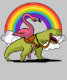 Flamingo Bird Riding T-Rex Dinosaur Rainbow design for fantasy lovers.