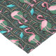 This elegant flamingo bird pattern decorative table runner design is made in a retro 20s Art Deco style. The bright pink flamingos rest against a background that includes fern fronds in bold colors and geometric rectangular shapes in shades of teal green / turquoise blue, all on a backdrop of black. This original, stylized design is perfect for anyone who loves these tropical animals and is looking for an elegant pattern with a retro 1920s twist.