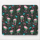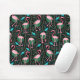 Flamingo Birds 20s Deco Ferns Pattern Black Green Mouse Pad