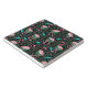 This elegant flamingo bird pattern decorative kitchen trivet design is made in a retro 20s Art Deco style. The bright pink flamingos rest against a background that includes fern fronds in bold colors and geometric rectangular shapes in shades of teal green / turquoise blue, all on a backdrop of black. This original, stylized design is perfect for anyone who loves these tropical animals and is looking for an elegant pattern with a retro 1920s twist.